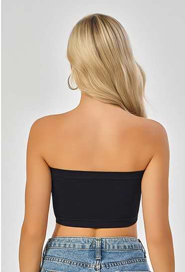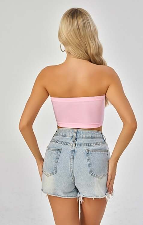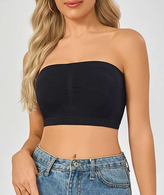 * Strapless bandeau design